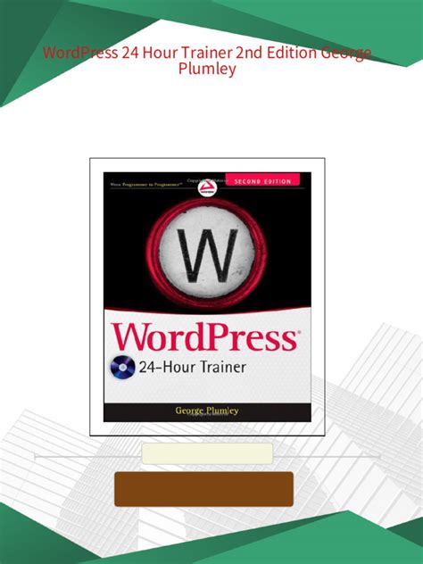 Download WordPress 24-Hour Trainer Doc By Click Button. WordPress 24-Hour Trainer it’s easy to recommend a new book category such as Novel, journal, comic, magazin, ect. You see it and you just know that the designer is also an author and understands the challenges involved with having a good book. You can easy klick for detailing book and you can read it online, even you can download it